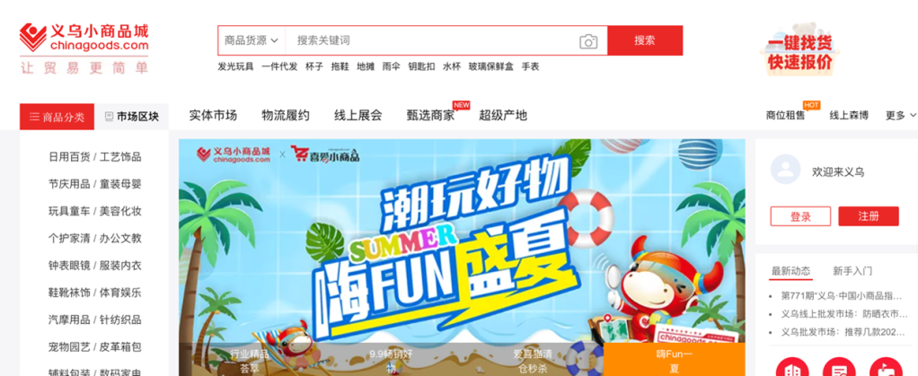 除此之外,商户可以通过市场官方创建的“义乌购”和“Chinagoods”平台来上传自己的商品,也可以通过像“1688”这样的电商平台来交易。这样就可以让无法来到实地查看商品的客户能够寻找到自己想要的商品