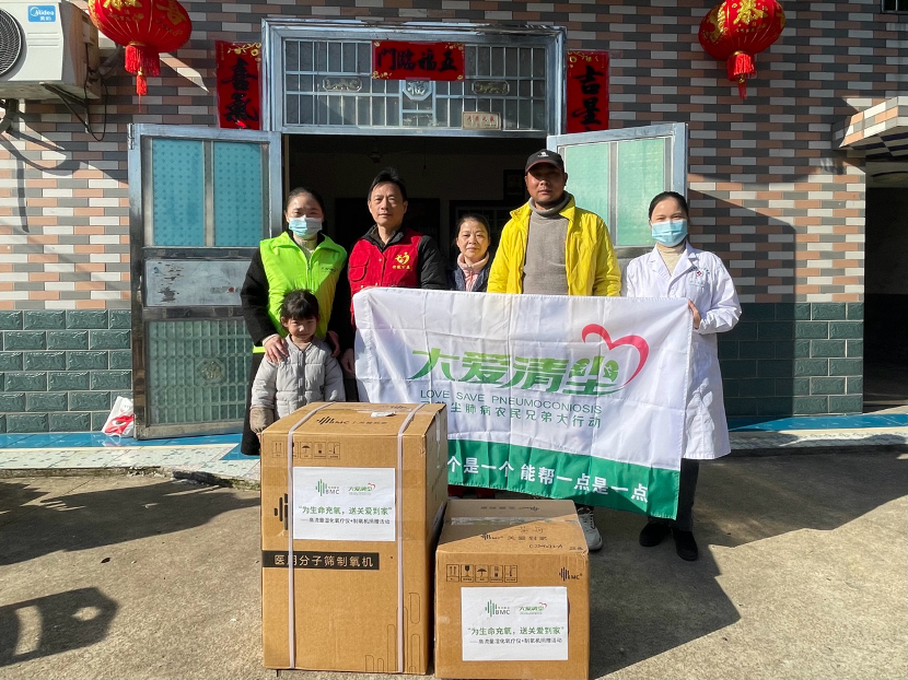 除了住院补贴,大爱清尘还会为尘肺农民们提供制氧机。