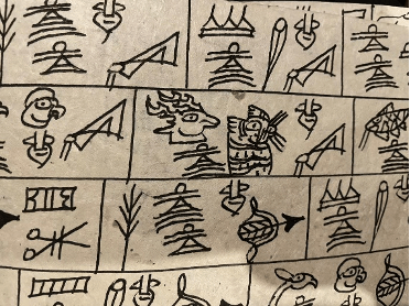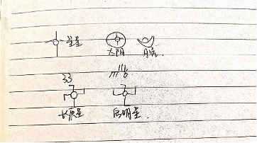 在采访东巴老师时,他向我们展示了他现在所在进行的项目。他与他师傅,一名极其渊博的老东巴合作,将老达巴所口述的所有经文的发音以东巴文字的方式记录下来。这些东巴文字中同样拥有日月星辰,甚至具体星宿的符号。
