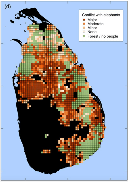斯里兰卡是亚洲象的主要栖息地之一,也是人象冲突的热点地区。在这里,每年约有超过200头大象和70人因人象冲突事件而死亡。20世纪50年代以来,该国缓解人象冲突的主要方法就是将大象的活动范围限制在保护区内。为了实现这一目的,人们常用闪光弹、爆竹、甚至枪弹声驱赶大象。