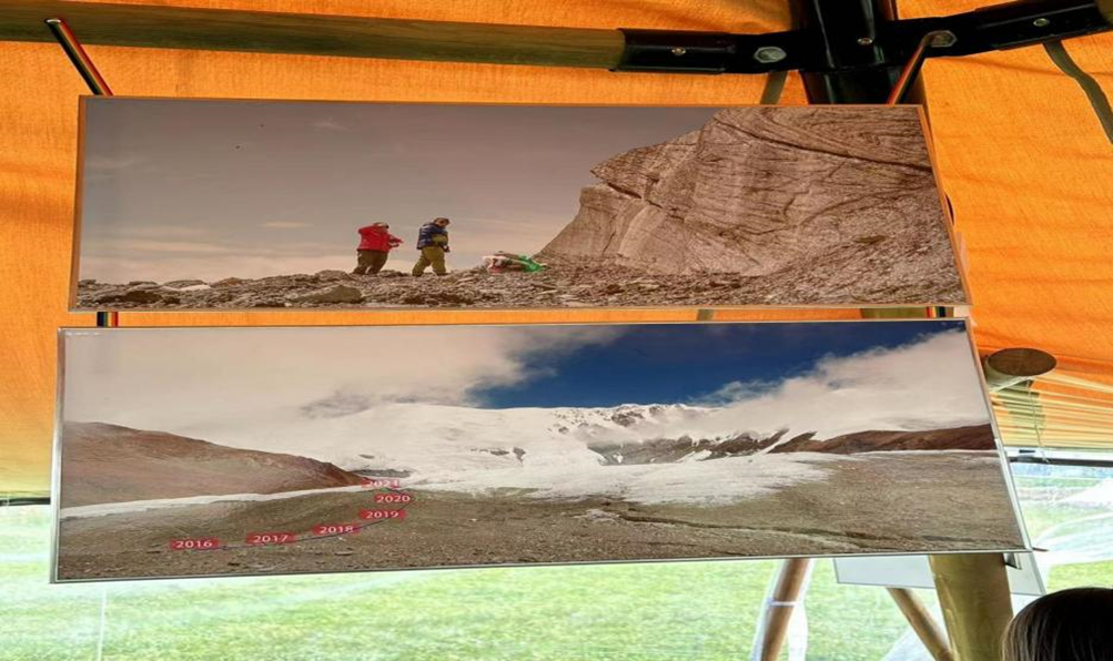 随着气候变暖,当地牧民眼里具有特殊意义的冰川正在逐年减少。多次拜谒阿尼玛卿山的卓玛能够清晰地观察到冰川的消退。她提到以前的冰川是雪白的,但这几年发觉“雪里掺着泥土”。以哈龙冰川为例,其面积在1987年至2006年的20年间由21.39平方公里缩减至20.59平方公里;而到了2017年,其面积进一步缩减至19.73平方公里。一些较小的冰川则在过去的一百年间消失了[6]。在阿尼玛卿做了二十余载环境保护工作的华青大哥对此也深有感触:他收藏的照片上清晰地记录着阿尼玛卿冰川从2016年到2021年的雪线。“在我们考察的四个检测点,雪线都上升了140多米。”