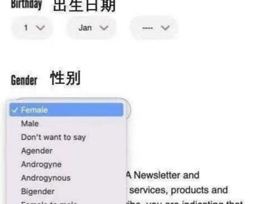 “二元性别观”包括以下的认知:世界上只有男女两种性别;男人要有男人的样子,女人要有女人的样子;跨性别不正常;男人变女人就是人妖;易装者有心理疾病;易装是私人的事情,不应该在公众场合展现出来;一个人的性倾向变来变去是不对的;性少数就是人生中的阴影导致的。