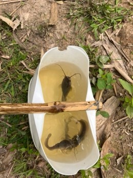 The three NGOs have supplied 350 catfishes and a fishpond to a family from Lao Loum. Before this project, the mother was a housewife, just looking after kids daily at home. However, she wanted to do something more for the family, and this project helped her achieve it. She now can sell 2-3 catfishes grown for 35,000 kip and earn extra money for her family.