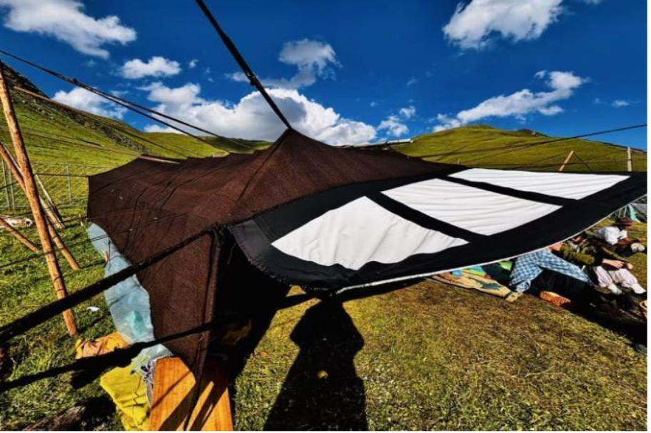 In the Saiqing Haradawa grassland, a group of Tibetan families still maintain a simple, traditional lifestyle. They live in tents with roofs made of black yak fur. These tents are not only cool and ventilated in summer but also warm and reliable in winter. When the sun shines, the yak fur loosens to allow fresh air to circulate inside, while during rainfall, the fur tightens to keep water out.