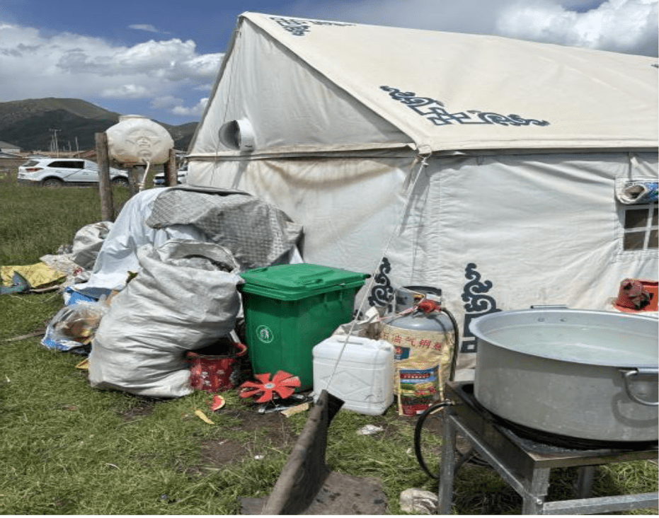 At the Saiqing Haradawa Grassland, a typical local Tibetan family provided insight into daily life and waste management practices in the area. To gain a broader understanding, both adults and children were included in the interview process. The hostess—likely the family member most directly involved in daily chores and waste disposal—explained, “We usually rely on traditional methods such as burning or burial. But there are also public trash bins nearby, and we do use them as well.”