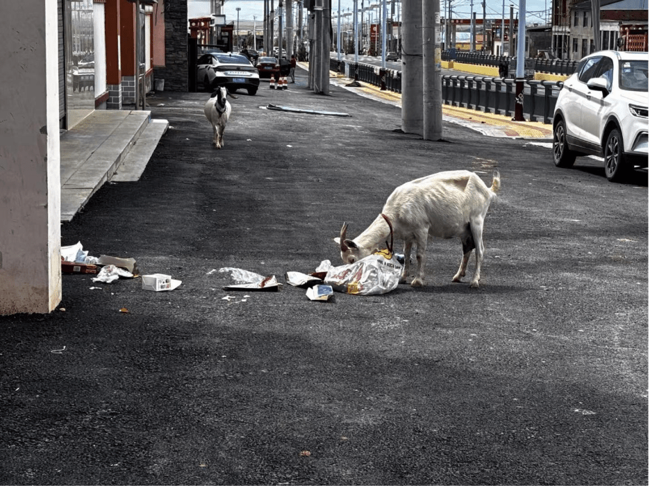 While walking through the area, we encountered a local resident carrying a bottle of yogurt. Cairang, who has extensive experience living in the region, explained that containers such as bottles are typically “burned or buried,” and that waste sorting and reuse remain rare practices in most Tibetan communities.